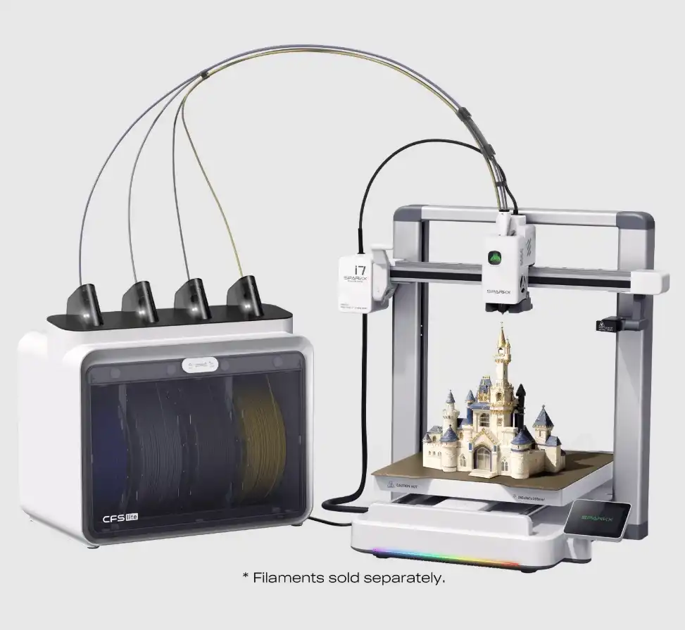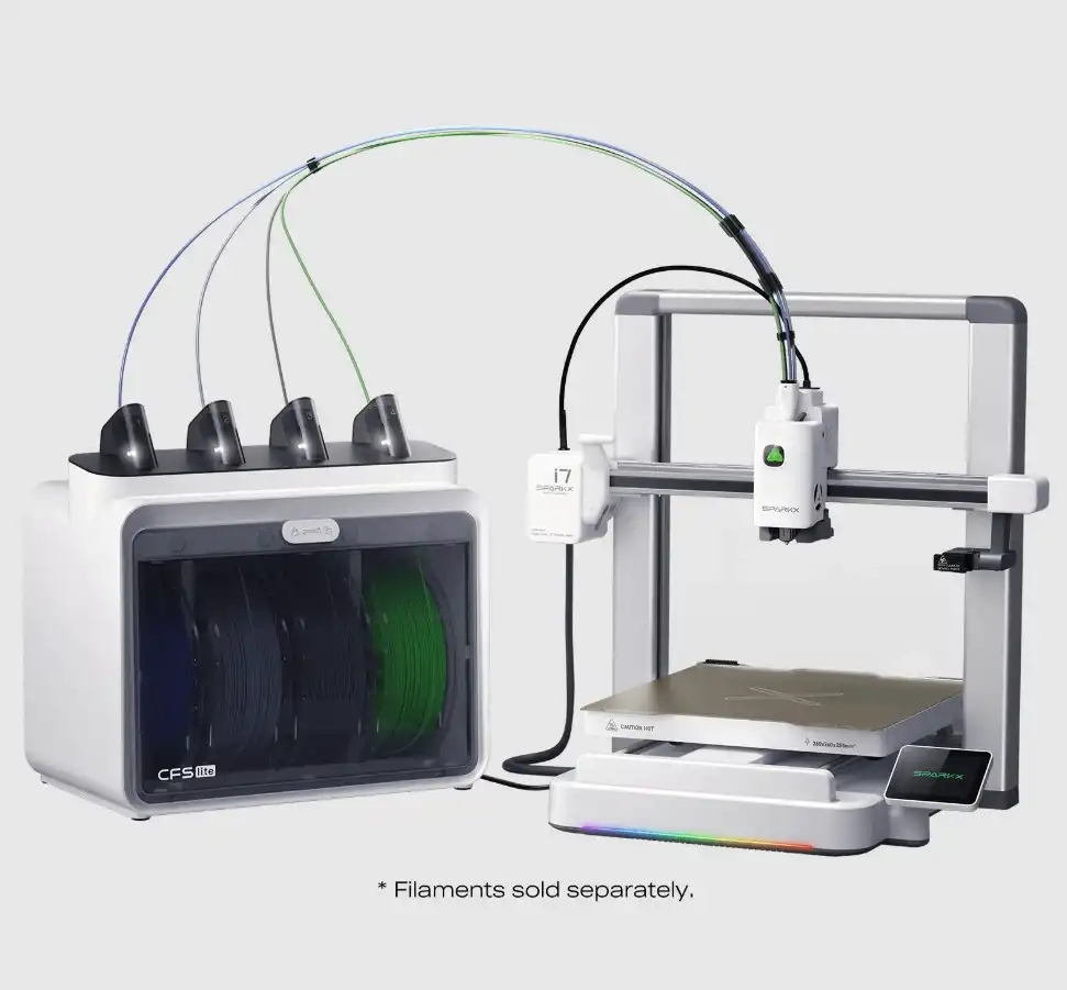 SparkX i7 Combo modelinin kalbinde yer alan CFS Lite (Creality Filament System), tek bir baskıda 4 farklı renge kadar üretim yapmanıza olanak tanır.