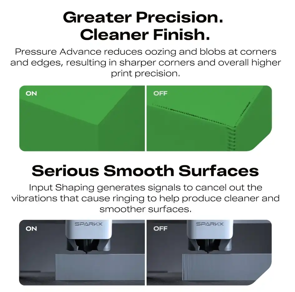 Hız ve Kalite Çıkmazının Aşılması: Piyasada satılan standart yazıcılar 50 ile 100 mm/s hızlarda çalışırken, SparkX i7 kaliteden ödün vermeden 500 mm/s hıza ulaşır. Rakiplerin 10 saatte bastığı bir modeli, siz sabah kahvenizi içene kadar kusursuz bir yüzey kalitesiyle elinize verir.
