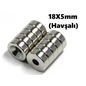 Yuvarlak Neodyum Mıknatıs 18X5mm (Havşalı)
