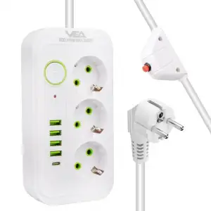 3'lü 4 USB'li 1.5 Metre Akım Korumalı Priz Beyaz