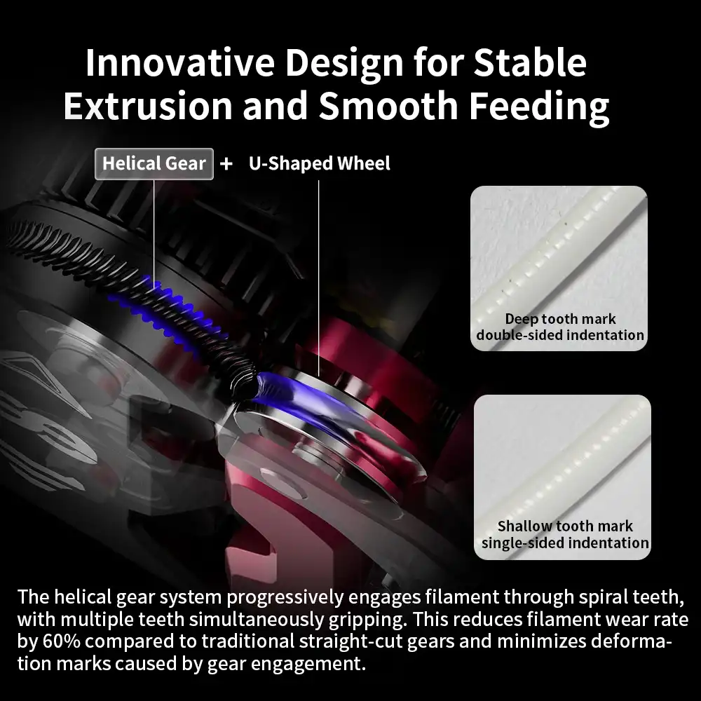 • Stabil Besleme: Çift dişli yapısı, filament üzerinde güçlü bir kavrama oluşturarak ekstrüzyon tutarlılığını garanti eder.