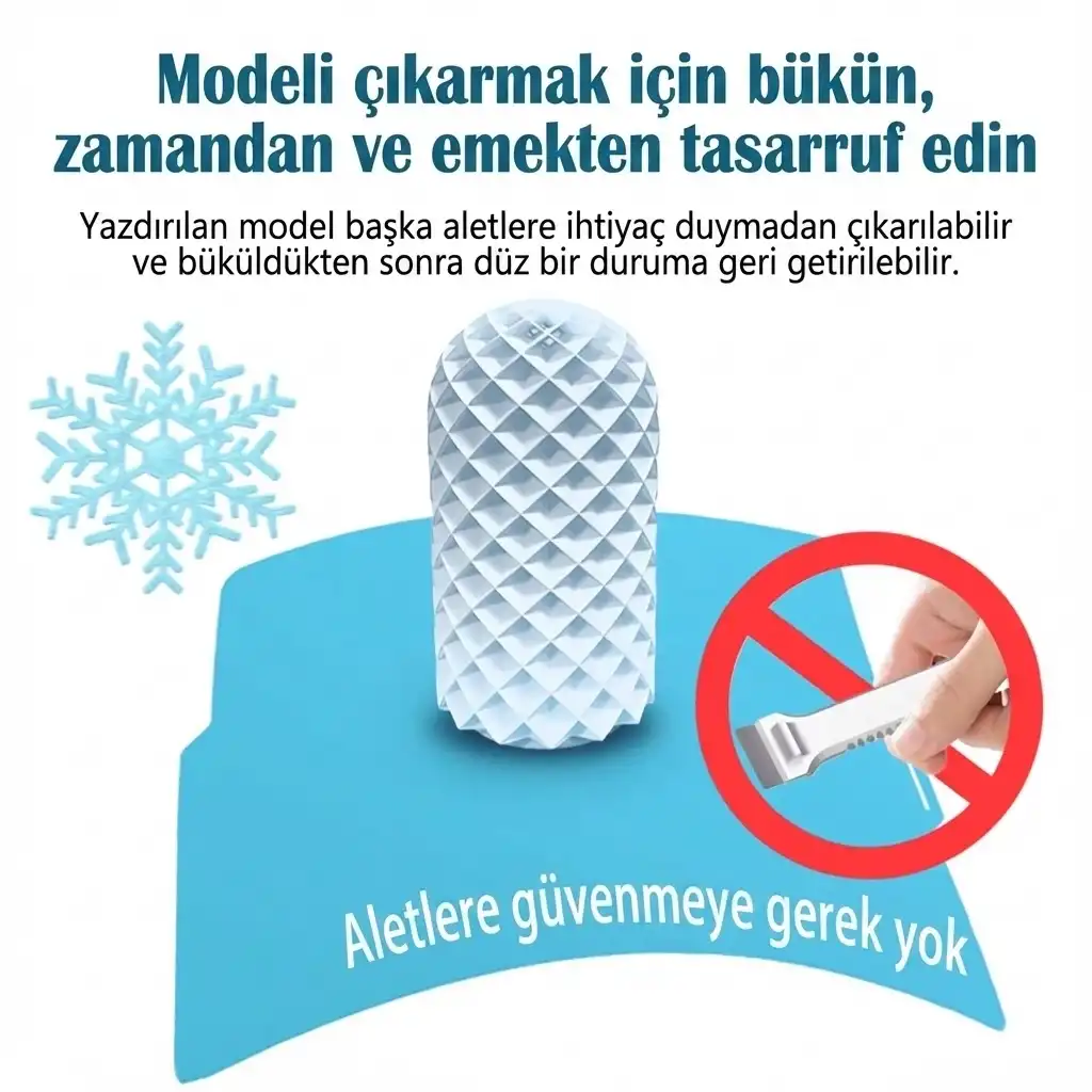 Baskılarınız düşük ısıda bile tablaya güçlü bir şekilde tutunurken, baskı tamamlandığında taban yüzeyi cam gibi pürüzsüz ve parlak bir dokuya sahip olur. Hem enerji verimliliği sağlayan hem de yüzey kalitesini artıran bu teknoloji ile sıcaklığı değil, baskı kalitenizi yükseltirsiniz.