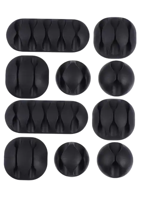 10'lu kablo düzenleyici seti, teknolojik cihazların yoğun olduğu çalışma masalarında, ev sinema sistemlerinde ve ofis ortamlarında meydana gelen kablo karmaşasını profesyonelce ortadan kaldırmak için tasarlanmıştır. Kendinden yapışkanlı tabanı sayesinde masa kenarı, duvar veya cihaz arkası gibi farklı düzlemlere kolayca sabitlenebilen klipsler, kabloların sarkmasını ve birbirine dolanmasını engeller. Esnek yapısı 1 cm kalınlığa kadar olan şarj, veri, ses ve güç kablolarını güvenle kavrar. Modern ve minimalist tasarımıyla çalışma ortamınızda sadece düzen değil, aynı zamanda şık bir görsel bütünlük oluşturur.