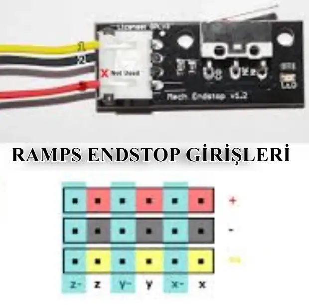 3D Yazıcı Limit Switch ( Endstop )3D Printer Endstop Switch, ne zaman etkinleştirildiğini tespit etmek için palet kullanır. Anahtar kablolanır, böylece etkinleştirildiğinde, sinyali DÜŞÜK değerine çeker. Anahtar aktive edildiğinde pcbde yanacak bir LED de vardır. Standart bir 4 pinli başlık standart olarak kullanır