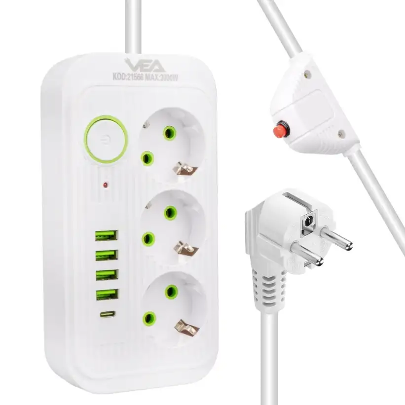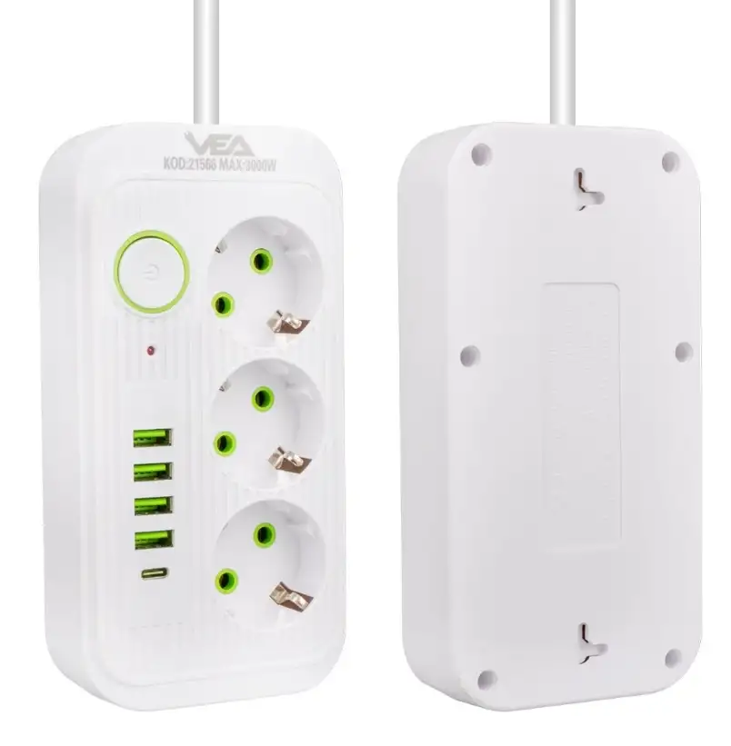 Telefon, tablet, laptop gibi USB ile şarj edilen cihazlarınızı hızlı ve güvenli şekilde şarj edebilmeniz için tasarlanmış olan 3'lü 4 USB'li 1.5 Metre Akım Korumalı Priz Beyaz, aynı zamanda bilgisayar, monitör ve diğer elektronik cihazlarınız için üçlü priz girişleri sunar. Hem ev hem iş yerlerinde elektrik ihtiyacınızı karşılamak için ideal olan bu ürün, çoklu bağlantı ve yüksek performans isteyen kullanıcılar için mükemmeldir.