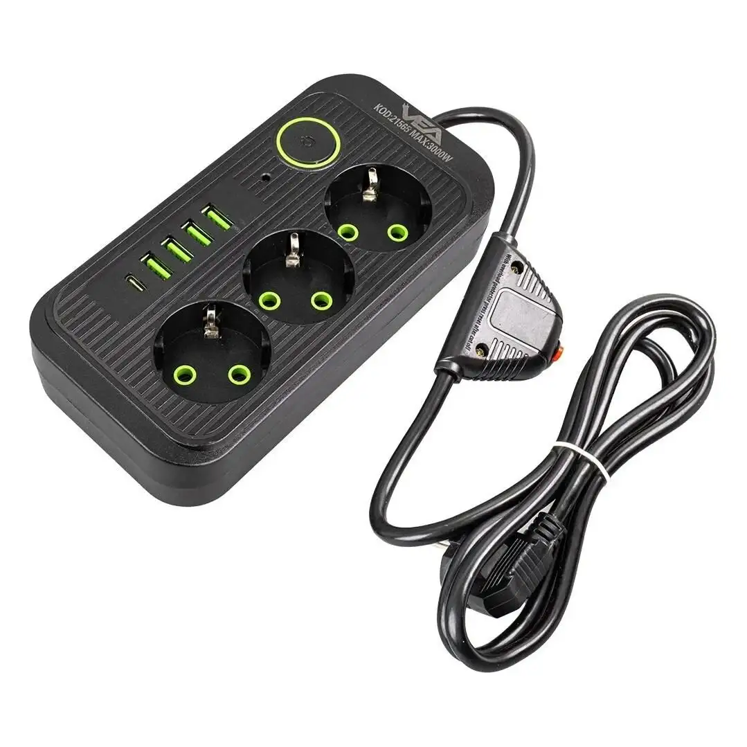 3'lü 4 USB'li 1.5 Metre Akım Korumalı Priz Siyah3'lü 4 USB'li 1.5 Metre Akım Korumalı Priz Siyah, hem priz hem de USB bağlantı noktalarıyla modern elektronik cihazlarınızı güvenle ve pratik şekilde şarj etmenizi sağlar. Özellikle ev ve ofis ortamlarında yoğun olarak kullanılan 3'lü 4 USB'li 1.5 Metre Akım Korumalı Priz Siyah, üç adet standart priz girişi ve dört adet USB çıkışı ile aynı anda birçok cihazı enerjiye bağlama imkanı sunar.