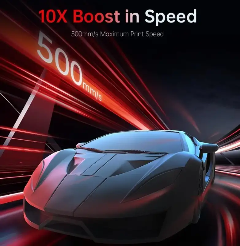 Ana akım FDM 3D yazıcılarla karşılaştırıldığında, baskı hızı 10 kat artar. Maksimum baskı hızı 500 mm / sn'ye kadar.
