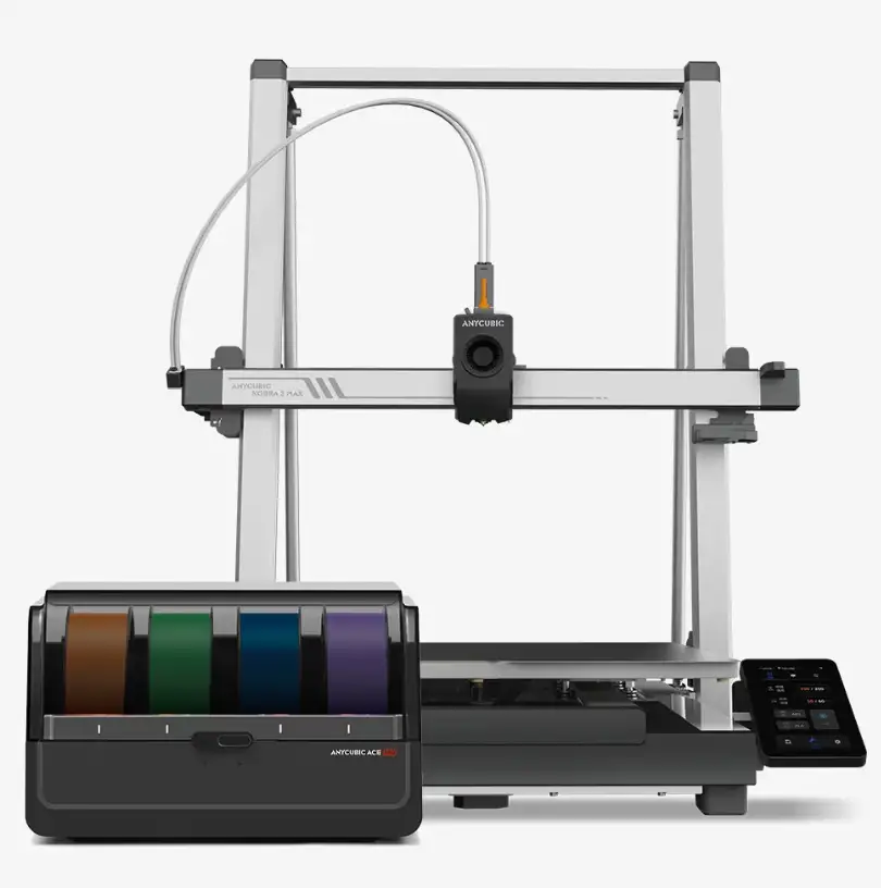 Anycubic Kobra 3 Max Combo, 420 × 420 × 500mm baskı hacmiyle piyasadaki en büyük tüketici sınıfı FDM yazıcılardan biridir. ACE Pro modülüyle birlikte 4 ya da çift ACE Pro bağlantılı 8 renkli baskı yapabilmeye olanak veren çok renkli baskı sistemi sunar. Auto-leveling, filament kurutma kutusu, yüksek hız (600mm/s),gelişmiş titreşim telafisi ve kullanıcı dostu arayüz gibi özelliklerle profesyoneller için güçlü bir çözümdür.