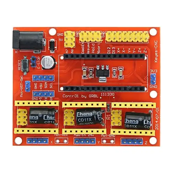 Arduino Nano CNC Shield, kompakt yapısı ve güçlü fonksiyonelliği ile mini CNC makineleri, 3D yazıcılar ve robotik projeler için geliştirilmiş bir genişletme kartıdır. GRBL yazılımı ile tam uyumlu olan bu shield, Arduino Nano'yu bir kontrol merkezine dönüştürerek 3 eksene kadar (X, Y, Z) step motor kontrolü sağlar. Küçük boyutları sayesinde yer tasarrufu sağlarken, kolay montaj imkanıyla projelerinize hız katar.