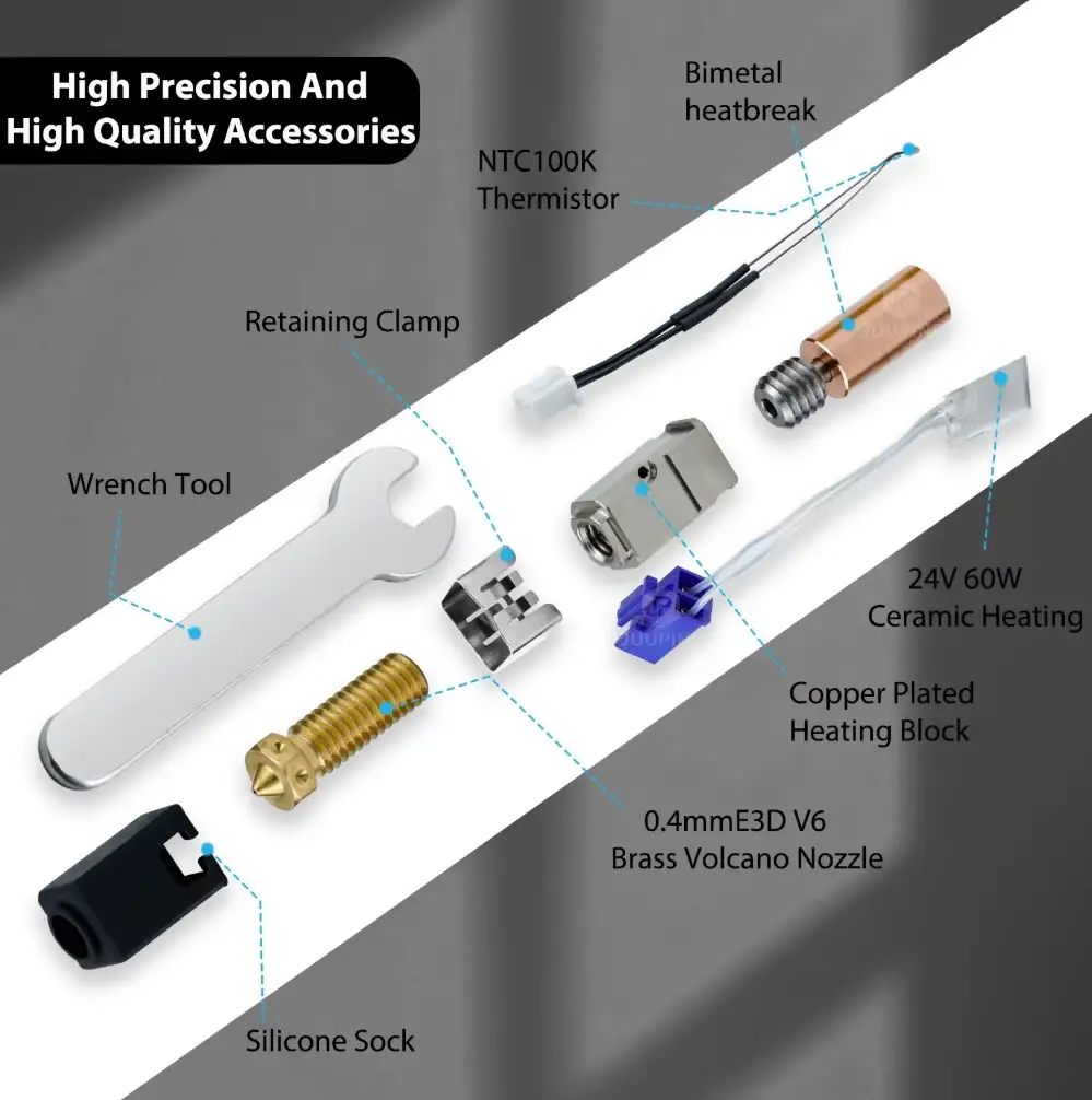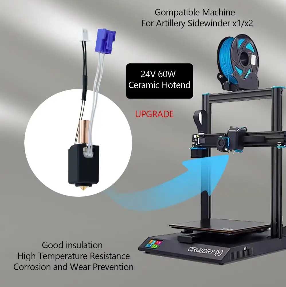Artillery Sidewinder X1/X2 Uyumlu Upgrade HotendArtillery Sidewinder X1/X2 Uyumlu Upgrade Hotend için yükseltme hotendidir.