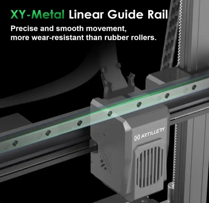 X ve Y ekseninde bilyalı rulmanlar içeren taşıyıcı kızaklara sahip olan bu üstün doğrusal ray yapısı, Artillery SW-X4 Plus'a daha fazla hassasiyet, daha iyi montaj ve daha yumuşak hareket sunarak yüksek hızlı 3D baskı altında nihai yapınızın inanılmaz kalitesini garanti eder.