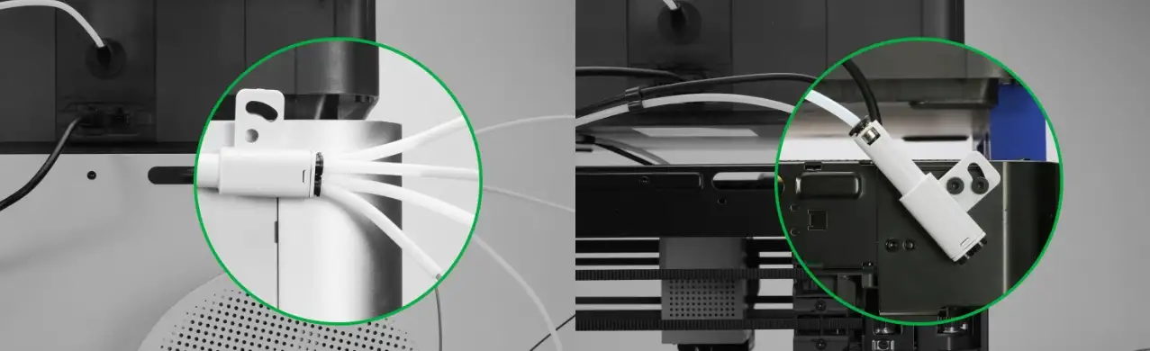 Bambu Lab 4-in-1 PTFE AdaptörüBambu 4-in-1 PTFE Adaptörü, dört farklı filament besleyiciyi aynı anda yazıcıya bağlamanızı sağlayan çoklu bir PTFE boru adaptörüdür. Orijinal bağlantı parçasına kıyasla bu adaptör, hem AMS modülünü hem de AMS ile uyumlu olmayan filamentleri (örneğin TPU 95A, Bambu PET-CF, karbon veya cam elyaf içeren filamentler) birlikte kullanmanıza imkân tanır. Toplamda yedi farklı filamentle çalışma esnekliği sunar ve sisteminize genişletilmiş uyumluluk kazandırır.