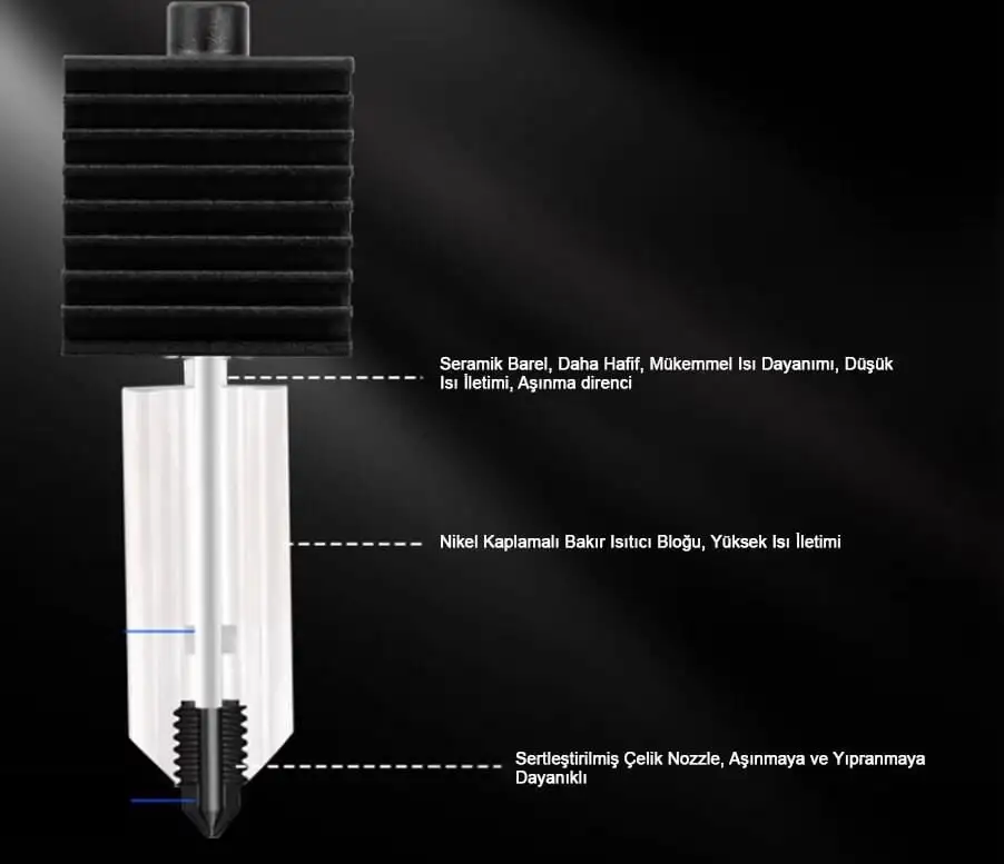 Bambu Lab A1 Upgrade V3.0 HotendBambu Lab hotendlerin nozzle değişmiyorken Upgrade hotend ile nozzle değiştirebilir olan modelleri sizler için sunduk.