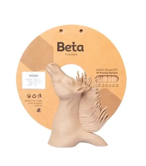 Beta PLA Wood Filament ÇeşitleriBeta PLA Wood, standart PLA’nın %70’i ve %30 oranında gerçek ahşap lifleri içeren özel bir kompozit filamenttir. Gerçek ahşap partikülleri sayesinde doğal bir görünüm ve sıcak bir his sunarak projelerinize estetik bir dokunuş katar. PLA bazlı yapısı, baskı kolaylığı sağlarken, ahşap lifleri ise yüzeyin doğal ve organik bir dokuya sahip olmasını mümkün kılar.