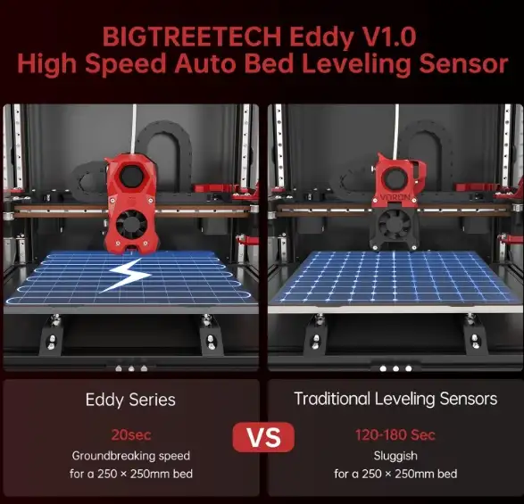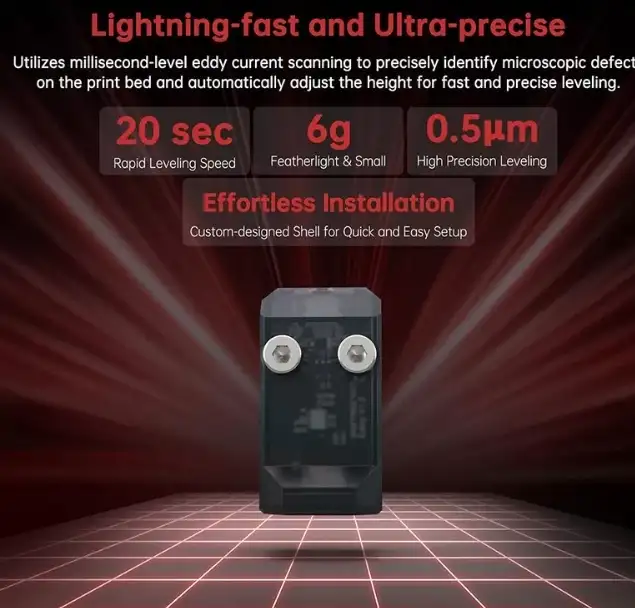 BIGTREETECH Eddy Coil V1.0, yalnızca Klipper için tasarlanmış en son teknolojiye sahip bir seviyeleme sensörüdür. Büyük boyutlu FDM yazıcılarda bile yalnızca 20 saniyede ultra hızlı seviyeleme sağlar. Yalnızca 6g ağırlığında olup, hareket sırasında minimum etki yaratırken 0.0005mm hassasiyet sunar.