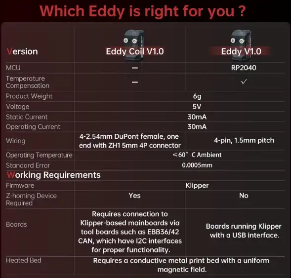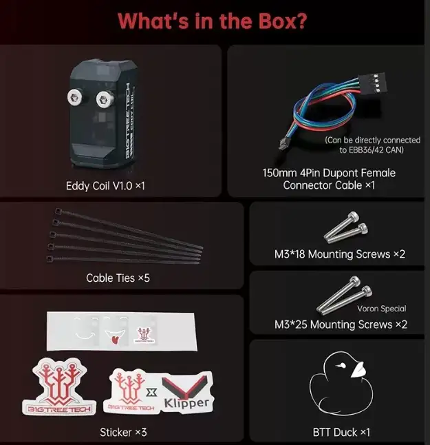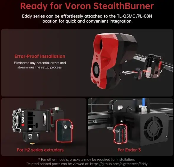 Eddy Coil, BTT EBB36/42 CAN tool board'larıyla uyumludur, böylece 3D yazıcı sisteminize kolayca entegre edilebilir.