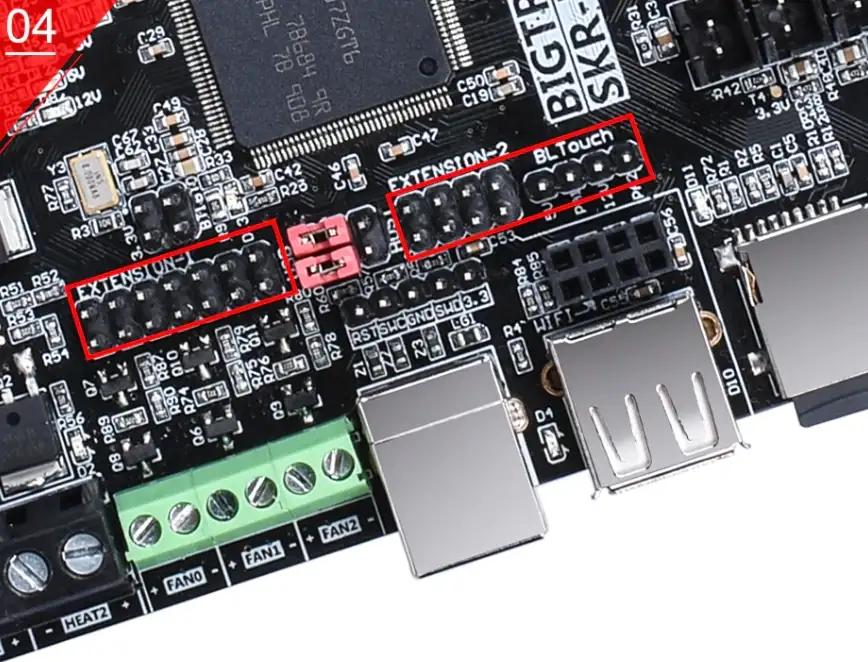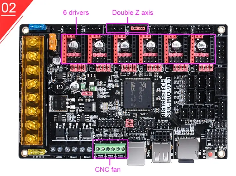 Ekran: BIGTREETECH TFT28, BIGTREETECH TFT35, LCD2004, LCD12864 3 Extruder desteği - BL Touch Desteği - UDISK (FLASHDISK ILE GCODE OKUMA) CNC FAN DESTEĞİ - WIFI DESTEĞİ