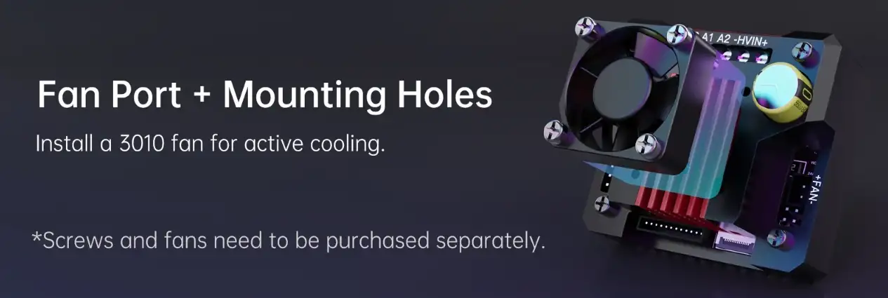 Üzerinde 24V sürekli çalışabilen fan bağlantısı bulunur, böylece aktif soğutma mümkündür