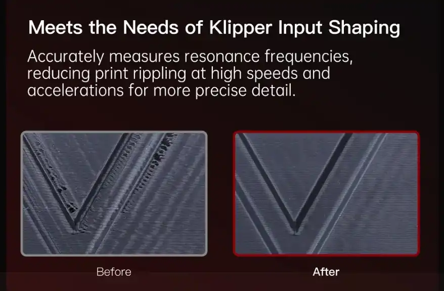 BIQU ADXL345 V2.0.1, Klipper tabanlı 3D yazıcılarda Input Shaping (rezonans telafisi) kalibrasyonu yapmak için tasarlanmış yüksek performanslı bir ivmeölçer modülüdür. USB haberleşme özelliği sayesinde, karmaşık GPIO bağlantılarına ihtiyaç duymadan doğrudan Raspberry Pi veya ana kartınıza bağlanarak kurulum sürecini basitleştirir. Yazıcınızın yüksek hızlarda oluşturduğu titreşimleri analiz ederek baskıdaki "ghosting" ve "ringing" etkilerini ortadan kaldırmanıza yardımcı olur.