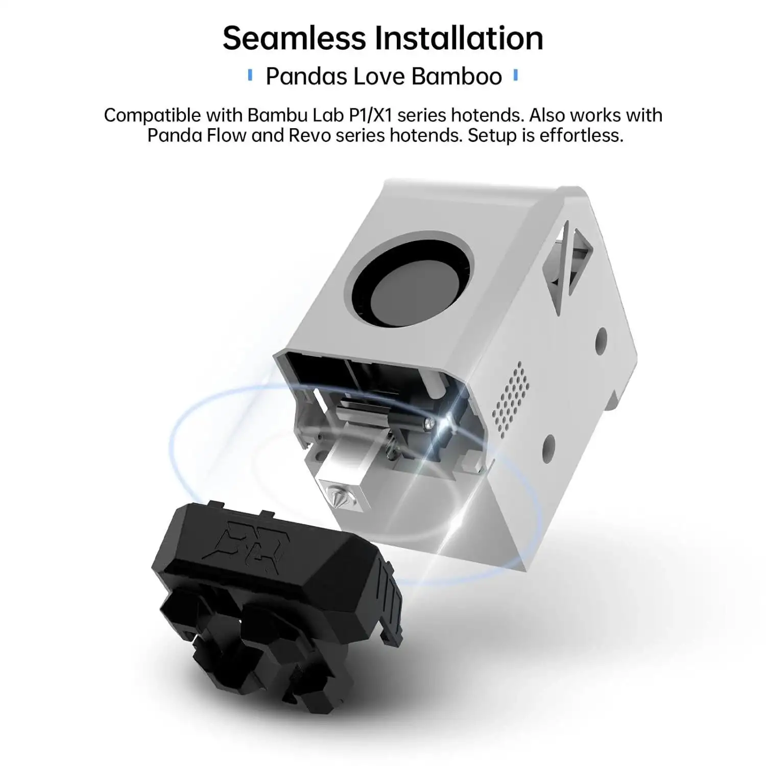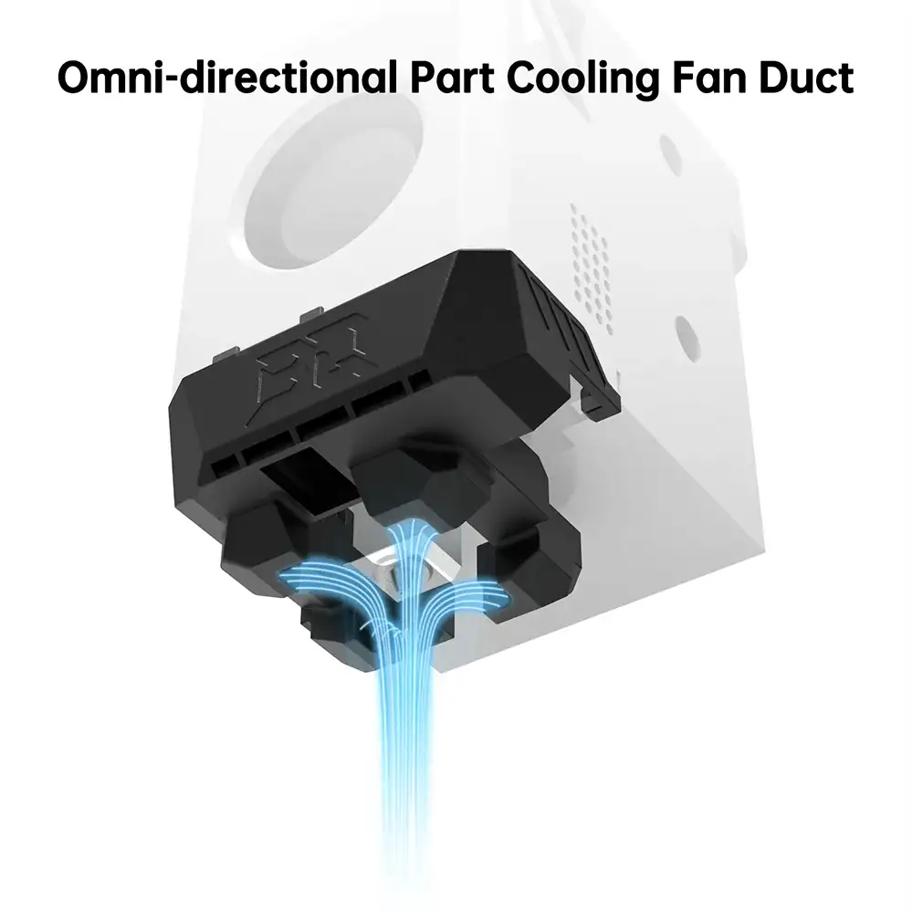 Panda Jet, yüksek kaliteli MJF naylon ile üretilmiş, her yöne hava üfleyebilen bir soğutma fanı kanalıdır. Yüksek sıcaklık direnci, yüksek mukavemet, korozyon direnci ve dayanıklılık özellikleri ile uzun ömürlü performans sağlar. Panda Jet'in yenilikçi hava yolu tasarımı ve köşe çıkış yerleşimi, soğutma havasını hassas bir şekilde nozüle yönlendirerek köprüleme ve sarkmaları iyileştirir ve baskı görünümünü net tutar. Bambu Lab P1/X1 serisinin sıcak uçlarına sorunsuz bir şekilde monte edilebilir ve ayrıca Panda Flow ve Revo serisi sıcak uçlarla uyumludur.