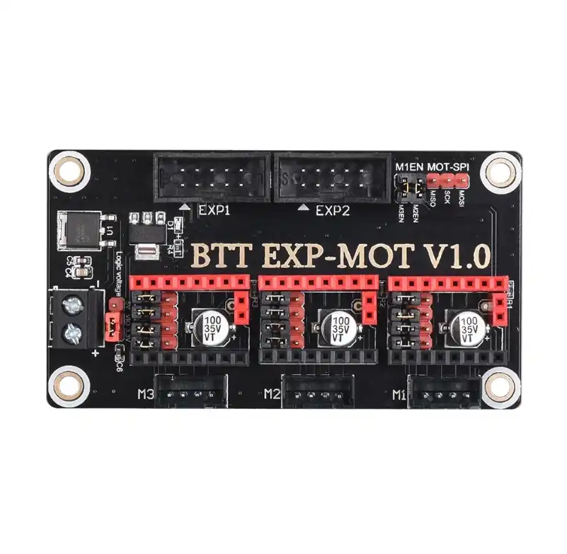 BTT EXP-MOT Motor Genişletme Modülü 3D yazıcı kullanıcıları için motor bağlantı sayısını artırmaya yönelik geliştirilmiş yüksek kaliteli bir genişleme ünitesidir. Özellikle çoklu step motor kullanan ve ek motor bağlantılarına ihtiyaç duyan sistemlerde güvenilir ve pratik bir çözüm sunar. Mevcut anakart ile uyumlu çalışarak motor çıkışlarını genişleten bu donanım kullanıcıların ekstra motorları sisteme dahil etmesine olanak tanır. Kompakt tasarımı sayesinde anakart ve yazıcı kasasında minimum alan kaplayarak kurulum ve montaj süreçlerini hızlı ve zahmetsiz hale getirir.