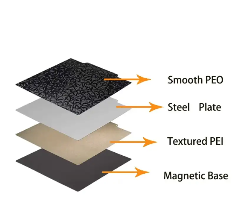 Çift Taraflı PEI-PEO Yay Çeliği Levha, 3D yazıcılarınızda yüksek sıcaklık dayanımı ve ısıya karşı üstün direnç sunar. Hem PEI hem de PEO kaplama, baskı yüzeyinde mükemmel yapışma sağlar ve baskılarınızın kolayca çıkarılmasını sağlar. Çift Taraflı PEI-PEO Yay Çeliği Levha'nın çift taraflı kullanımı, her iki yüzeyin de verimli bir şekilde kullanılmasına olanak tanır, bu da daha uzun ömürlü ve ekonomik bir çözüm sunar.