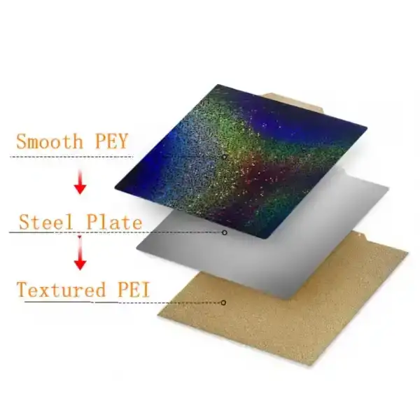 PEI yay çeliği sacı, diğer aletlerin yardımı olmadan bükülebilir ve plaka düz bir duruma döndürülebilir, deformasyon olmaz. Dahası, çift taraflı dokulu (çıkartma değil, gerçek toz boyalı PEI),her iki tarafa da basılabilir ve çizilmez, uzun ömürlüdür.