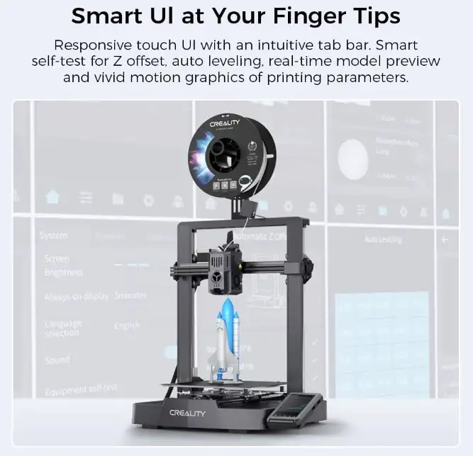 Creality Ender-3 v3 KE ile HIZLI SEZGİSEL BASKI DENEYİMİ: Creality Ender 3 V3 KE 3d yazıcı, piyasadaki yazıcıların çoğundan daha hızlı, 8000mm / s ² hızıyla 500mm / s hıza kadar baskı yapabilir. Baskı işlerini beklemek için zaman kazanarak modelleri verimli bir şekilde tamamlayabilirsiniz. Ayrıca, aynı zamanda iyi baskı kalitesini koruyabilir. Sezgisel sekme çubuğu, gerçek zamanlı model önizlemesi ve baskı parametrelerinin canlı hareketli grafikleri ile duyarlı dokunmatik kullanıcı arayüzü ekranı.