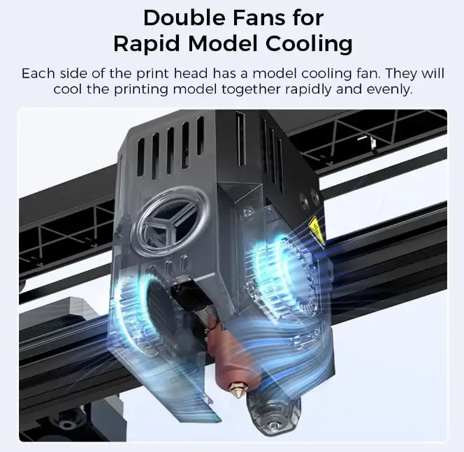 Creality Ender-3 v3 KE YÜKSELTİLMİŞ TASARIM: Creality Ender 3 V3 KE akıllı AIgorithms işlevine sahiptir, minimum zil veya hayalet için yazıcının titreşimlerini azaltır, daha az leke ve sızıntı için besleme akışını optimize eder. Ayrıca, baskı kafasının her iki tarafında bir model soğutma fanı vardır. Baskı modelini hızlı ve eşit bir şekilde soğutacaklar. Fanı iyi durumda ve hızlı bir şekilde alabilirsiniz.