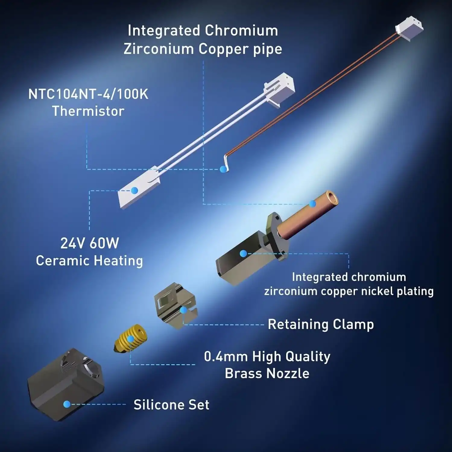 Creality Ender 3 V3 SE kullanıcıları için tasarlanan bu yükseltilmiş (upgrade) hotend seti, yüksek hızlı baskılarda üstün termal yönetim performansı sunar. Isıtma bloğunun yüksek sıcaklığa dayanıklı bakır alaşımdan üretilmiş olması, ısıtma verimliliğini artırırken iç yüzeylerdeki Ra ≤ 0.4um pürüzsüzlük kontrolü, filament sürtünmesini ve tıkanma riskini minimize eder. 260°C'ye kadar sorunsuz çalışma kapasitesi ile projelerinizde daha kararlı bir akış ve profesyonel yüzey kalitesi sağlar.