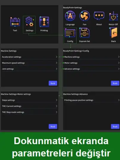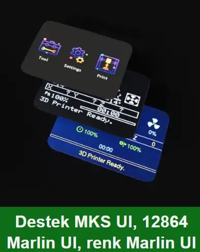 İstediğiz taktirde MKS nin dokunmatik TFT ekranları ile deneyimlerinizi geliştirip WIFI , USB disk gibi özellikleri de kullanabilirsiniz.