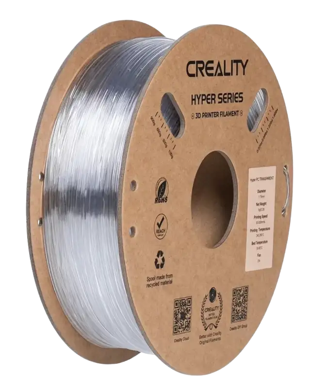Creality Hyper PC Transparan Filament 1.75mm 1KgCreality Hyper PC Transparent, yüksek performanslı polikarbonat (PC) bazlı bir filament olup özellikle dayanıklılık, ısı direnci ve kristal berraklığında baskılar arayan kullanıcılar için tasarlanmıştır. Şeffaf görünümü, güçlü teknik özellikleri ve kolay baskılanabilir yapısıyla öne çıkar.
