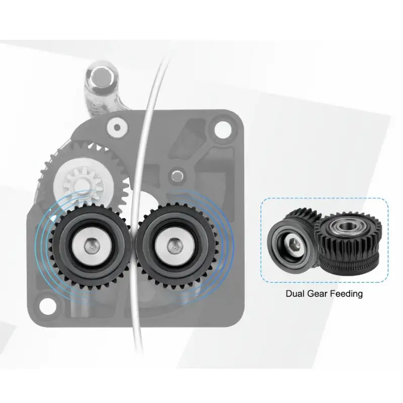 Creality K1 / K1C / K1 Max Extruder Dişlisi Sertleştirilmiş Çelik, baskı sırasında filamentin daha sağlam ve dengeli bir şekilde ilerlemesini sağlar. Bu da daha düzgün katmanlar, daha az baskı hatası ve daha kaliteli sonuçlar anlamına gelir. Özellikle yüksek sıcaklıkta çalışan filamentlerde, yıpranmaya karşı üstün direnç göstererek uzun süre güvenli kullanım imkânı sunar.