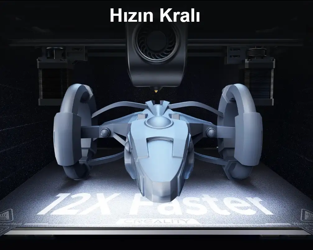 Creality K1 MAX, Creality'nin yüksek hızlı bir 3D yazıcı modelidir. Bu yazıcı, normal bir FDM 3D yazıcıdan 12 kat daha hızlıdır ve 600mm/s'ye kadar baskı hızına ulaşabilir. Bu hız, 20000mm/s² hızlanma ile elde edilir, bu da K1 MAX'in sadece 0.03 saniye içinde tam hıza ulaşmasını sağlar.