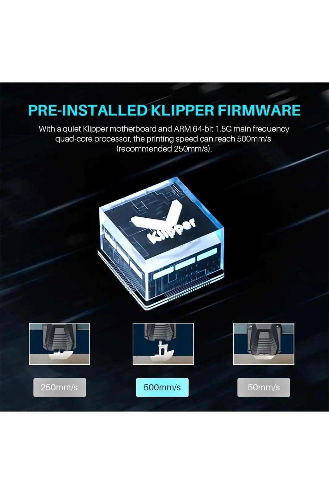 Neptune 4 Max, giriş şekillendirme ve basınç ilerletme gibi gelişmiş özellikleri destekleyen, (varsayılan 250 mm/sn) ve 8000 mm/sn'ye varan hızlara kadar etkileyici baskı hızları sağlayan güçlü Klipper ürün yazılımı ile birlikte gelmektedir.Önceden yüklenmiş Klipper üretici yazılımımızla, ürün yazılımı yükleme zahmetine girmeden hemen yazdırmaya başlayabilirsiniz.