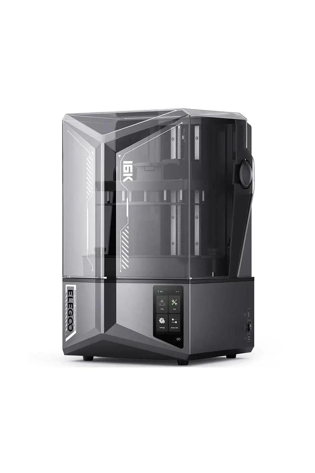Elegoo Saturn 4 Ultra 16K, 10 inç 16K mono LCD ekranı (15120×6230 piksel) sayesinde 14×19µm XY çözünürlüğüne ulaşarak, olağanüstü detaylı ve pürüzsüz yüzeyler elde etmenizi sağlar. Z ekseni doğruluğu 0,02mm, katman süresi 5,5s ve maksimum baskı hızı 150mm/s ile hem hız hem de hassasiyet sunar.