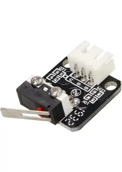 Ender 3 Endstop, Creality Ender 3, Pro ve V2 modelleri başta olmak üzere çoğu FDM yazıcıyla tam uyumlu, kritik öneme sahip bir limit switch ünitesidir. Yazıcınızın X, Y veya Z eksenlerindeki hareket sınırlarını belirleyen bu sensör, kafa grubunun veya tablanın başlangıç (home) pozisyonuna milimetrik doğrulukla yerleşmesini sağlar.