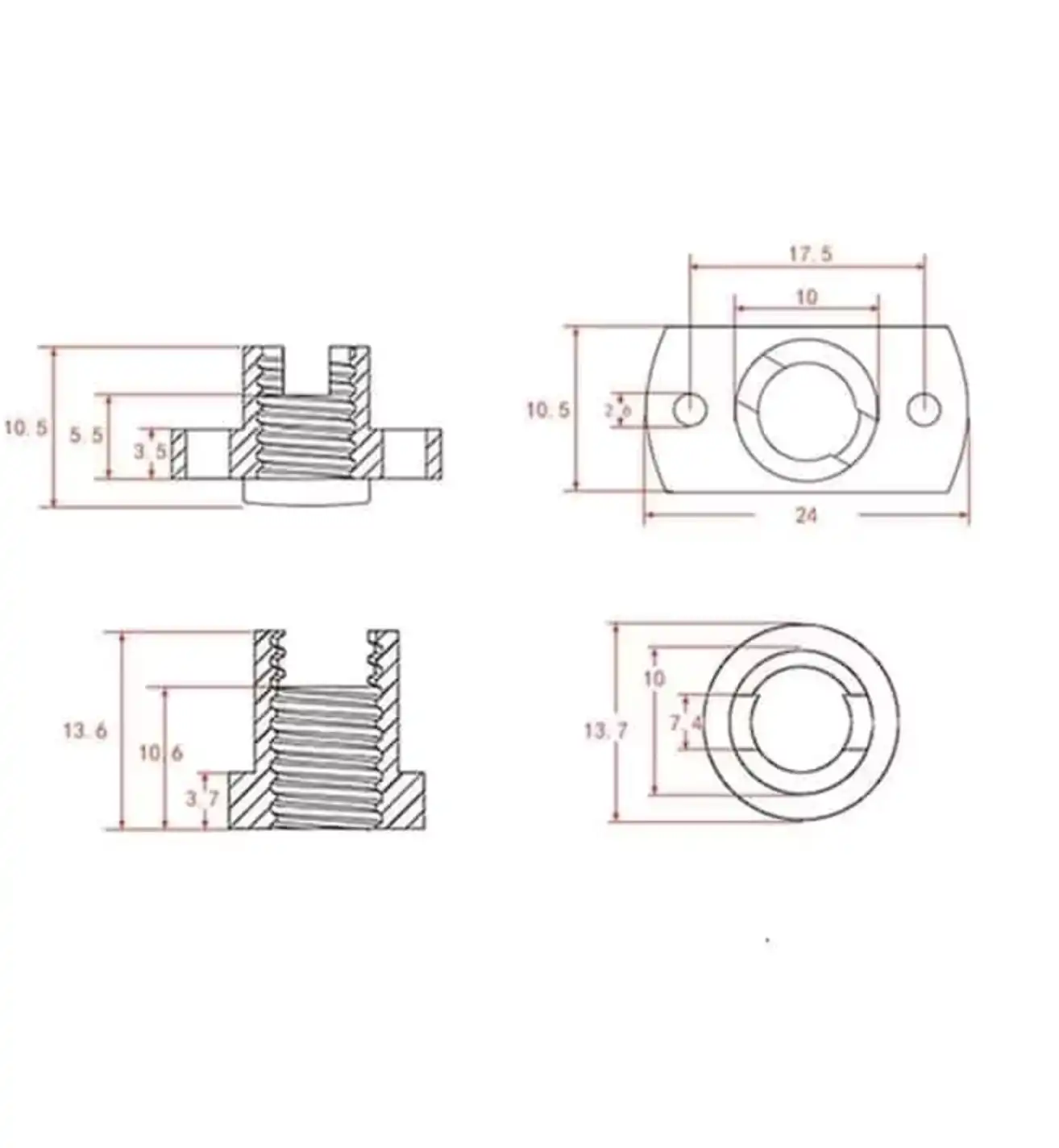 Paket Bilgileri1x Pirinç Anti-Backlash Trapez Somun