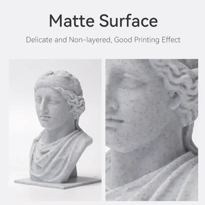 Mermer PLA, 3D yazdırılmış projeye doğaya yakın gerçekçi bir mermer görselleştirmesi ekler. İnce mermer tonları baskı boyunca rastgele dağılarak benzersiz bir görünüm yaratır. Sanat ve el sanatları projeleri, vazolar ve diğer ürünler için mükemmeldir.