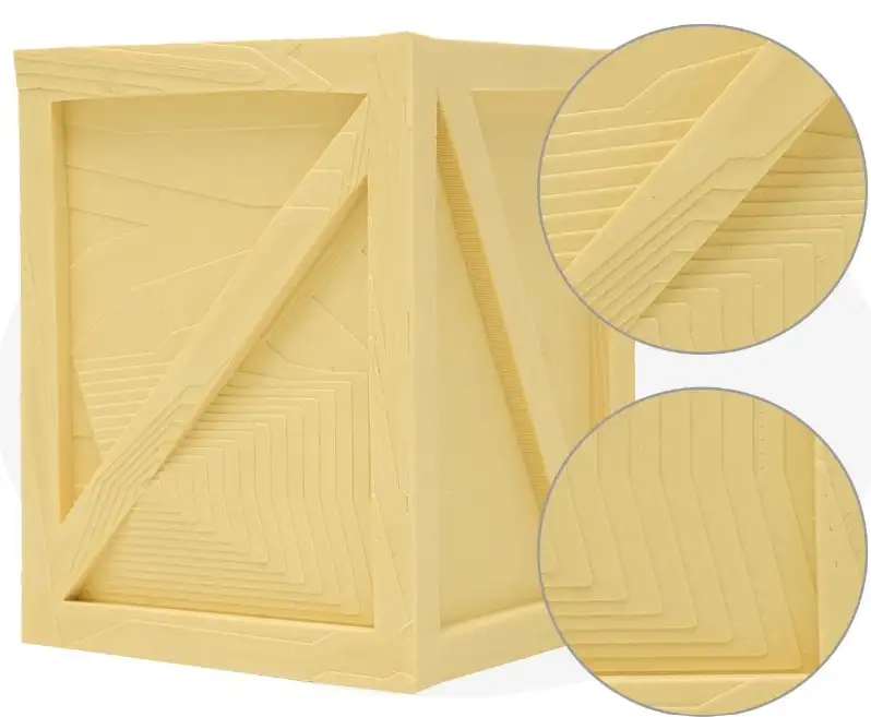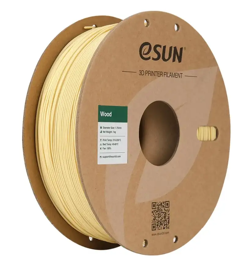 Ahşap filament, 0,7 g/cm3 düşük yoğunluklu PLA ile ahşap benzeri görünüm elde etmek için aktif köpük teknolojisini kullanır. eSUN ahşap pla filamenti, saf malzemelerden, biyolojik olarak parçalanabilir ve çevre dostu, toksik olmayan ve düşük kokulu olarak üretilir.