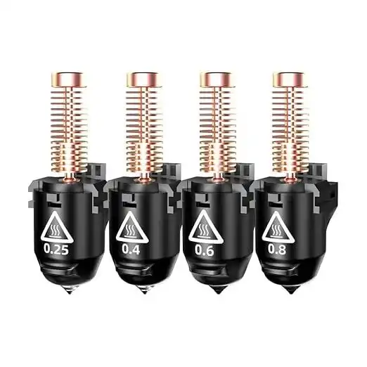 - Sertleştirilmiş Çelik Seçeneği: Aşındırıcı filamentler (Carbon Fiber, PETG-CF vb.) için dayanıklı uç yapısı.