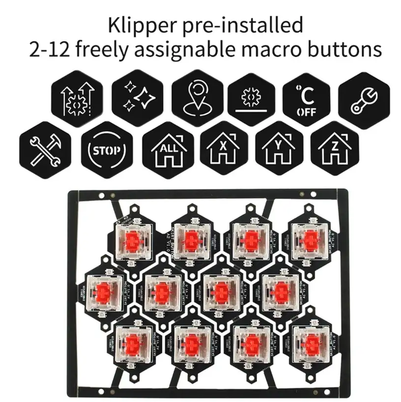 Kolay montaj ve dayanıklı yapısı sayesinde Voron kullanıcıları için pratik ve uzun ömürlü bir kontrol çözümü