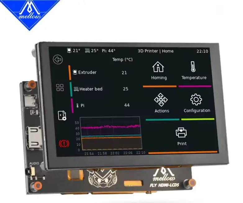 Mellow FLY HDMI5 LCD EkranMellow FLY HDMI5, Klipper tabanlı 3D yazıcılar için optimize edilmiş, hem temiz hem de profesyonel bir kullanım sunan çok yönlü bir dokunmatik ekran çözümüdür. FPC portu ve HDMI girişi sayesinde hem dahili montaj hem harici görüntüleme seçenekleriyle esneklik sağlar