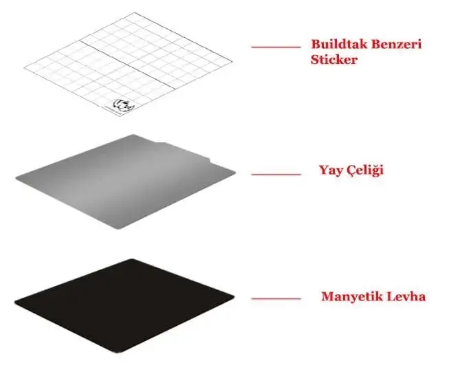Mıknatıslı Yay Çeliği + Buildtak Benzeri Baskı Tablası Özellikleri: