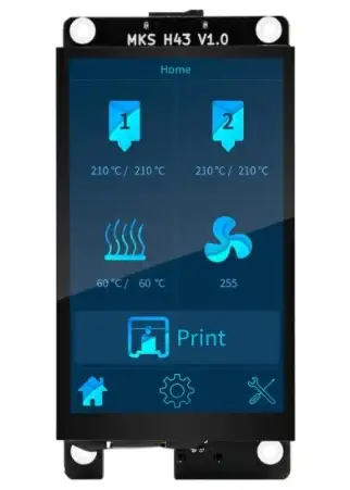 - MKS H43, 800 x 480 çözünürlüğe sahip 4,3 inç yüksek çözünürlüklü IPS ekrandır ve akıllı telefonlardaki gibi kontrolleri yapmak için kapasitif bir dokunmatik ekran kullanır. Piyasadaki çoğu FDM-3D yazıcı anakartlarına uyum sağlar ve 3D yazıcı yükseltmeleri için çok uygundur.