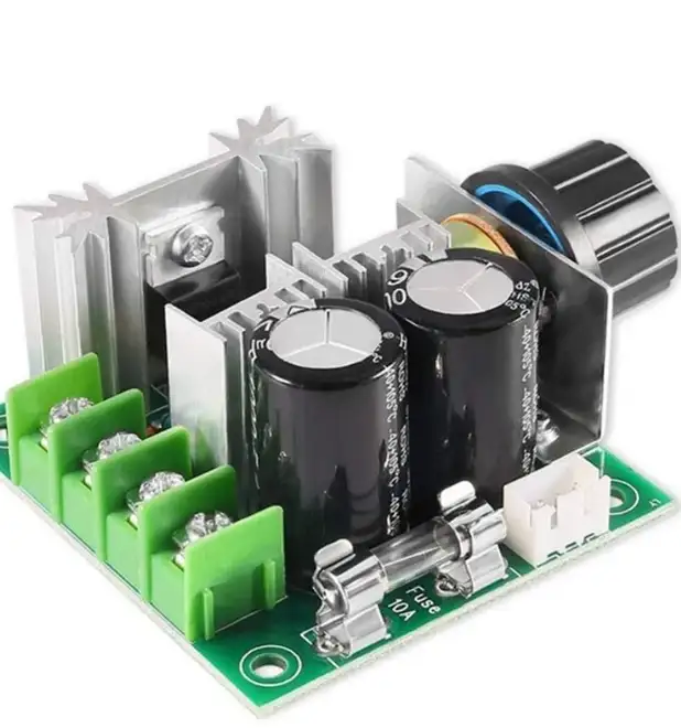 Tek yönlü hız kontrolü yapar ve potansiyometre aracılığıyla motor hızını hassas bir şekilde ayarlamanıza olanak tanır. Büyük kapasitörler ve soğutucu bloklar, kararlı çalışmayı destekler ve yüksek akımlarda ısınmayı önler. 10A sigorta koruması, aşırı akıma karşı güvenlik sağlar.