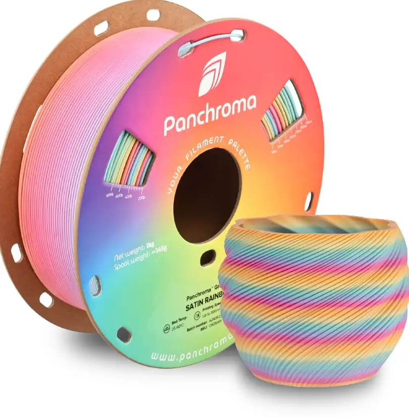 Polymaker Panchroma PLA Gradient Satin Rainbow FilamentPolymaker Panchroma™ PLA Gradient Satin Rainbow (1,75mm | 1kg), her biri ince satin yüzey efekti ve yumuşak renk geçişleriyle dolu gökkuşağı gölgelerinden oluşan özel bir gradient filament serisidir. Estetik baskılar için tasarlanmış bu ürün, hem görsel kalite hem de baskı performansı açısından üst düzey bir seçenek sunar.