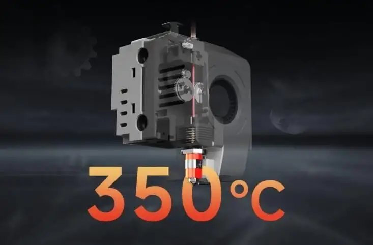 60°C'ye kadar sıcaklıklara sahip standart ısıtmalı baskı odası, bükülmeyi azaltır ve katman yapışmasını iyileştirir. Bu, özellikle ABS, PA veya PC gibi bükülmeye eğilimli malzemelerde baskı kalitesine fayda sağlar. Güçlü ekstrüder, 350 ° C'ye kadar nozul sıcaklıklarına ve PAHT-CF veya PET-CF gibi yüksek sıcaklıktaki filamentlerin işlenmesine izin verir. Bu, daha iyi mekanik özelliklere sahip parçaların üretilmesini sağlar.