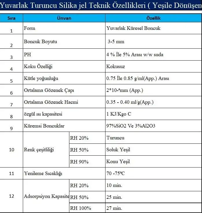 Renk Değişim Göstergesi: Nem doygunluğuna ulaştığında turuncu renk koyu yeşile döner, yeniden kullanılabilirlik için ideal bir çözüm sunar.