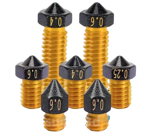 Daha iyi ısı iletkenliğine sahip birinci sınıf pirinç malzemeden dövülmüş yüzey, daha uzun ömür için kumlanmıştır.Yüzey PTFE ile kaplanmıştır, çizilmesi kolay değildir, filamentin yapışmasını etkili bir şekilde engelleyebilir.Siyah kaplama 300°C'ye kadar sıcaklıklara dayanabilir, daha yüksek çalışma performansı sağlar.Nozzle iç deliği düzgündür, tıkanması kolay değildir ve baskıyı etkilemez.1,75 mm filament için kullanılan çeşitli ölçülere sahip bu nozullar, piyasadaki çoğu 3D baskı için uygundur.